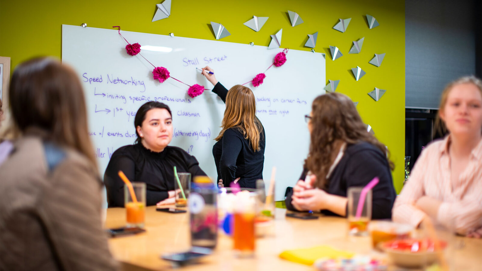 Designed to foster brainstorming, creativity, and problem-solving, the iLab embodies both Sarah Ramsey’s memory and Champlain’s commitment to innovation. The space provides collaborative meeting space for the Stiller Women in Business group and a quiet study area available to all students in the Stiller School of Business, though students in other majors can request access.