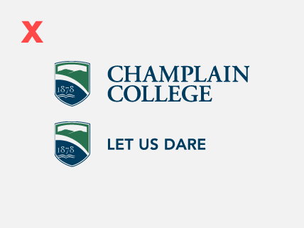 - When addressing external audiences not familiar with Champlain College, the shield and/or the motto should always be accompanied by the Champlain College wordmark.